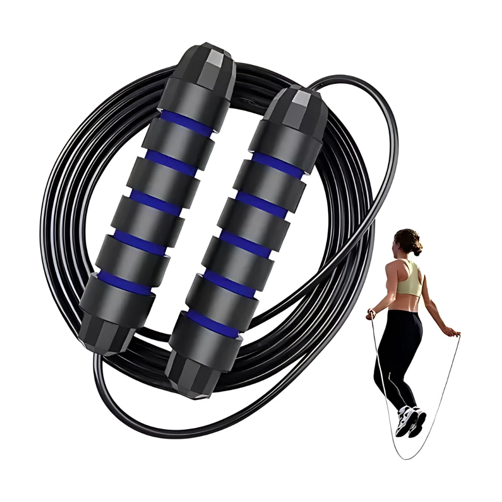 El alambre de acero con funda de PVC garantiza que esta cuerda soporte tus entrenamientos más exigentes, ofreciendo años de uso sin desgaste.